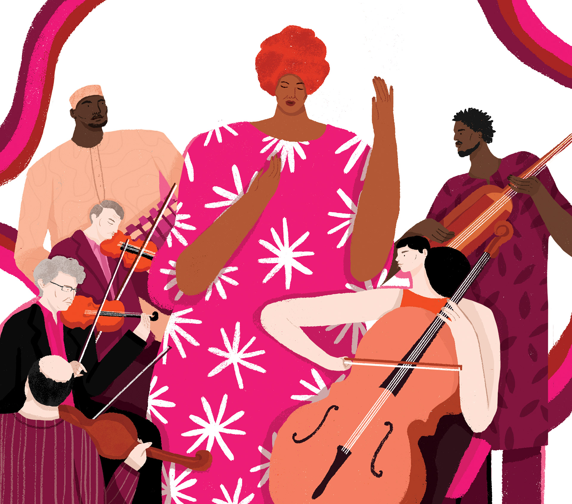 Created for the Goings On section of The New Yorker about Trio da Kali with the Kronos Quartet. Art Directed by Deanna Donegan